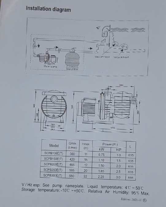 - Mã sản phẩm: SCPB 200E. Máy bơm hồ bơi, công suất 2Hp, lưu lượng 465 lit/phút, cột áp 17 mét, trọng lượng 18.5Kg.