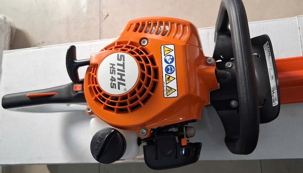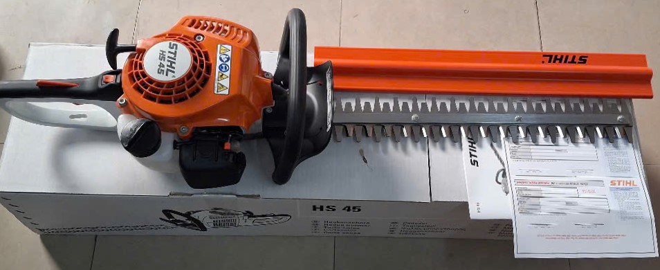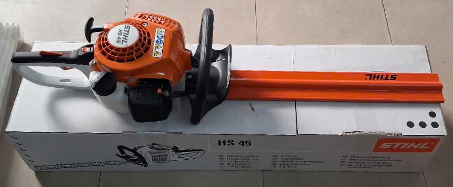 - Mã sản phẩm: HS45. Động cơ xăng 2 thì, công suất 0.75 KW(1 Hp), tốc độ không tải tối đa 8.500 vòng/phút, chiều dài lưỡi cắt 450mm (18Inch), trọng lượng 4.7 Kg.