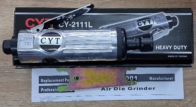 - Mã sản phẩm: CY-2111L: Máy mài khuôn dùng hơi, áp suất làm việc 90 Psi, tốc độ không tải 20.000 vòng/phút, đầu kẹp 6mm, trọng lượng 0.54 Kg.